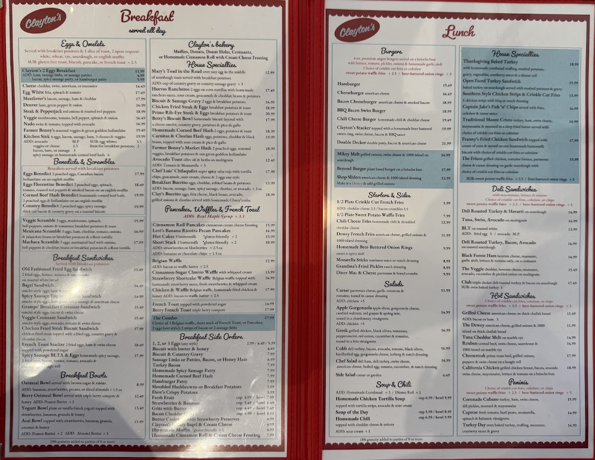 Nestled in the heart of Coronado, Clayton's Coffee Shop invites guests to savor a timeless breakfast and brunch experience. The menu offers a diverse selection of expertly crafted eggs and omelets, from classic 2 Eggs Breakfasts to inventive creations like the Meatlover’s and Farmer Benny’s Omelets, showcasing fresh, quality ingredients. For lighter options, the array of salads—including Greek, Caesar, and Cobb—balances flavors with simplicity and freshness.