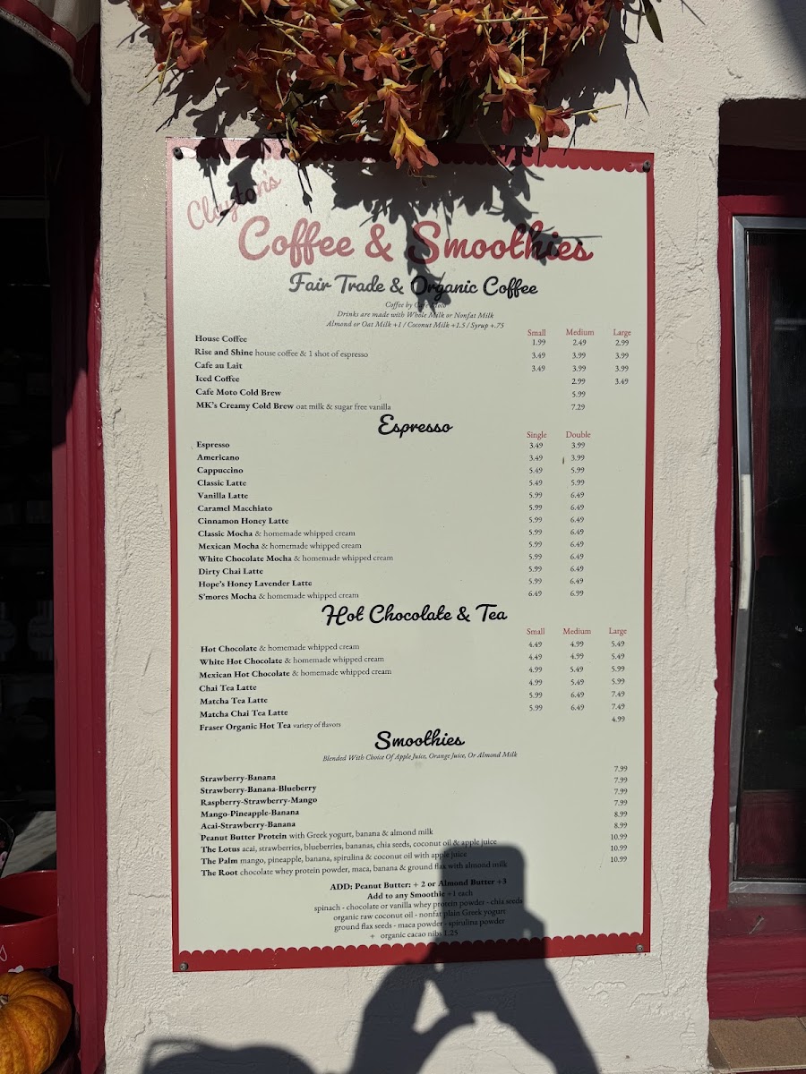 Introducing the menu at Clayton's Coffee Shop